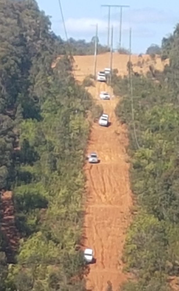 The track under the powerlines exits on Pile Road and, particularly if wet, could provide a few tense moments. There is a ‘chicken track’ to the right, 50 metres from the steep rise just before Pile Road.